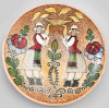 Hidi Endre (1944): Népies fali dísztányér. Mázas kerámia, kézzel festett, jelzett, hibátlan. d: 25 cm